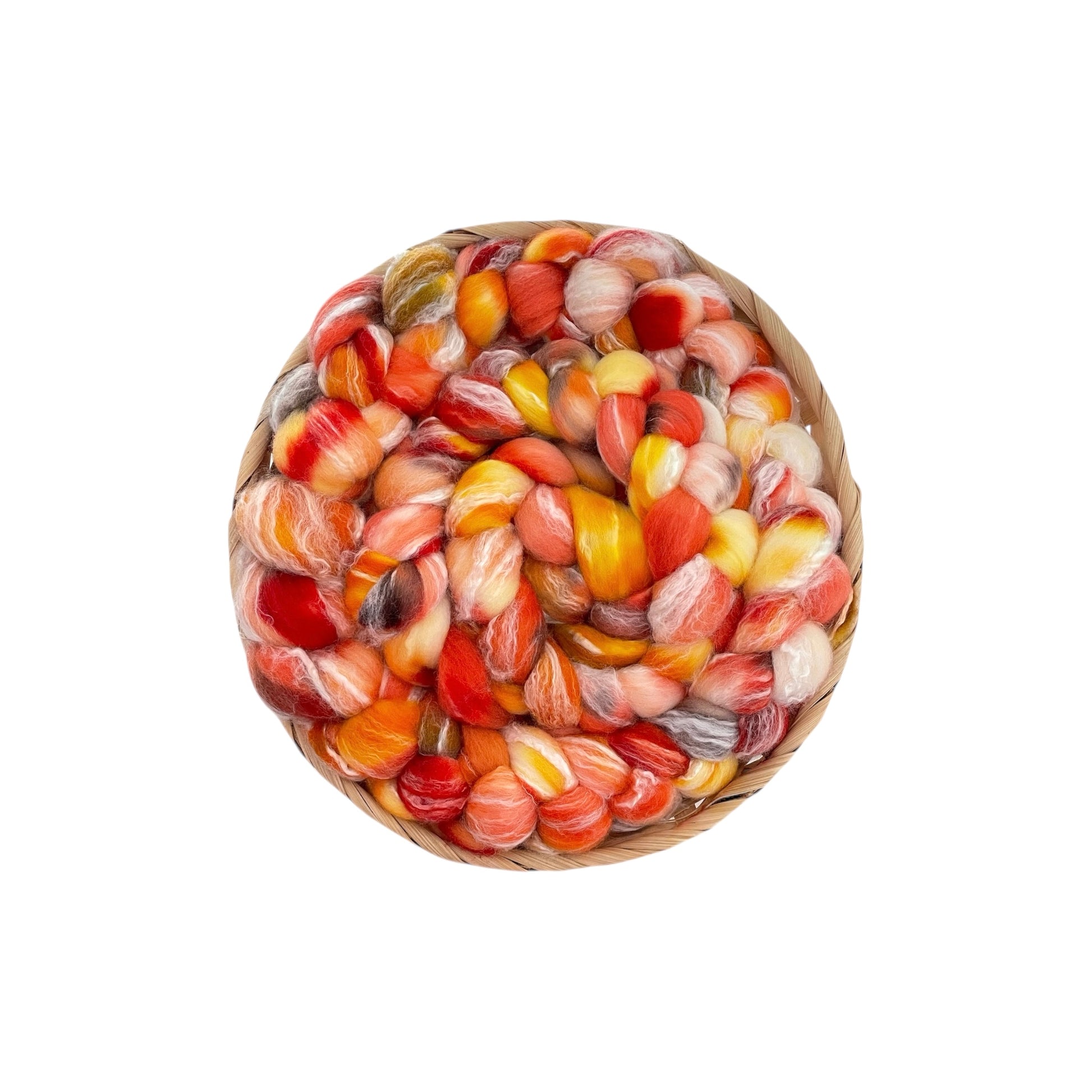 Perfect for spinning into lustrous, drapey yarns or for felting projects that call for both strength and softness, this fibre glides effortlessly through your hands. Each braid is small-batch dyed, ensuring your finished work is as unique as your creative vision.